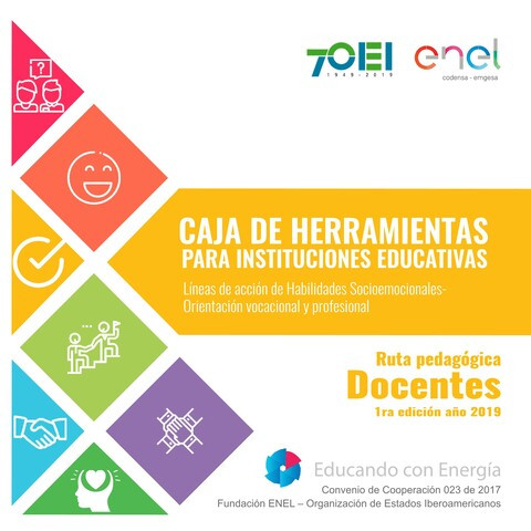 Toolbox for Educational Institutions: Lines of Action of Socio-Emotional Skills Vocational and Professional Orientation Year of publication: 2017 Corporate author: ENEL Foundation | Organization of Ibero-American States (OEI) This toolbox is aimed at educational agents who are motivated to articulate in their pedagogical work actions aimed at facilitating the decision-making of young people during their life path, by strengthening socio-emotional skills and vocational and professional guidance, in order to enable transformations, whether personal, family or social, and with a view to sustainable development.