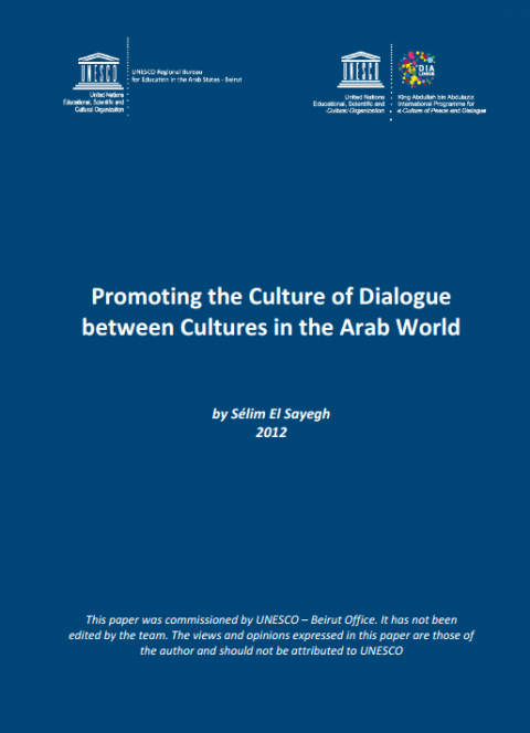 Promoting the culture of dialogue between cultures in the Arab world Year of publication: 2013 Author: Selim El Sayegh Corporate author: UNESCO Beirut The major challenge of the Arab uprisings resides in the youth drive. Accounting for 60 per cent of the Arab population, Youth have been calling for political and economic reforms. During the revolts, these claims have become more radical seeking a fundamental change. This gradual evolution, from a relatively partial change to a more absolute comprehensive one, ushers in a new era with a different intellectual construct. With the ousting of dictatorships, all civil society forces are unleashed with huge actual and potential resources mobilized to contribute to building up the new order. Groups of solidarity, communities, parties, associations, and organizations of all nature among many others put forward new ideas and adequate action plans. Liberty thus acclaimed becomes the outcry for dignity, honor and pride. Never before in the Arab world has the individual had such a central place as it does today. An individual fully grasping the possibilities of restored liberty and recognized dignity gives birth to a new citizen acting in a new paradigm; a new citizen that seeks a transcendence of the ego to relate the individual to the common good. This fresh paradigm empowers the individual as a citizen in the name of equality, while simultaneously recognizing the right of difference of each citizen when it comes to belonging to a culture or sub‐culture. The right to be different involves more than the right to differ and to dispute and by the same token, the obligation of peaceful settlement. The right to be different, by belonging to a culture or a sub‐culture means in a new era of liberty and dignity, the obligation to conduct a transformation of the patterns generating disputes and conflicts among cultures. Henceforth, the issue of promoting the culture of intercultural dialogue in the aftermath of the Arab revolts represents major characteristics that will be reflected hereafter.