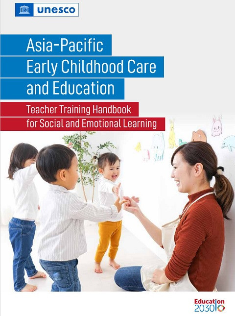 Asia-Pacific Early Childhood Care and Education: Teacher Training Handbook for Social and Emotional Learning Year of publication: 2022 Author: Monisha Singh Diwan Corporate author: UNESCO Bangkok The handbook was initiated by UNESCO Bangkok. This effort is in response to the widespread recognition of social and emotional learning (SEL)’s importance and the lack of robust and more contextually relevant and culturally sensitive SEL programme for teachers to effectively deliver SEL. With this, UNESCO Bangkok aims to support the Member States in the Asia-Pacific to equip their early childhood care and education (ECCE) teachers with SEL knowledge and skills, and to ensure that children develop pro-social and emotional skills and positive relationships within the early stage of the learning process, particularly in enhancing (1) knowledge about student SEL and classroom management; (2) strategies to apply in the classroom; and (3) teachers’ own social and emotional competence.The handbook provides the context and foundation for the programme. The background of the initiative that led to the regional handbook and training modules (Chapter 1), the introduction of the purpose and use of the handbook (Chapter 2), an overview of ECCE (Chapter 3), SEL (Chapter 4), teachers’ professional education, learning and development (Chapter 5), and APETT-SEL conceptual framework followed by an overview of the four themes and ten modules (Chapter 6). The Glossary provides definitions and/or explanations of key educational terminologies used to provide greater clarity. The ten comprehensive training modules aim to build capacity of pre-primary and early primary teachers, both pre- and in-service, across four themes. The first theme focuses on teachers and their well-being; the second equips teachers in building pro-social and responsive classrooms; the third focuses on diversity, inclusion, cultural responsiveness, and equity; and the fourth focuses on SEL measurement and assessment. Each training module consists of scripted sessions and activities, as well as reference materials included as handouts and additional readings.