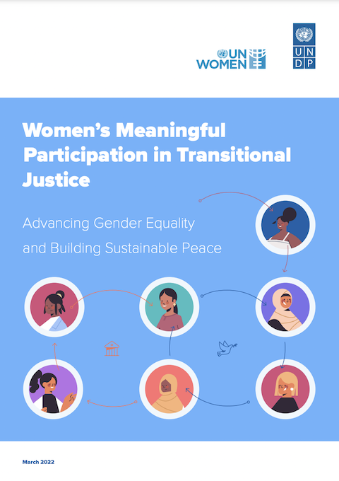 Women’s Meaningful Participation in Transitional Justice: Advancing Gender Equality and Building Sustainable Peace Año de publicación: 2022 Autor: Lorena Mellado | Emily Kenney | Hariwa Adil Autor corporativo: United Nations Entity for Gender Equality and the Empowerment of Women (UN Women) | United Nations Development Programme (UNDP) This detailed research paper explores what women’s meaningful participation in transitional justice means and “looks like” in policy and practice. It focuses specifically on women and addressing the unique barriers to women’s meaningful participation in transitional justice processes as a result of gender-based discrimination.This publication reviews the current policy framework and assertions for women’s meaningful participation in transitional justice and highlights critical gaps between policy and practice. The research paper suggests a definition for women’s meaningful participation in transitional justice, as well as typologies of women stakeholders and roles that women play within transitional justice.