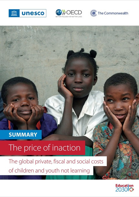 [Resumen] El precio de la inacción: el costo global privado, fiscal y social de que los niños, niñas y jóvenes no aprendan Año de publicación: 2024 Autor corporativo: UNESCO | Organisation for Economic Co-operation and Development (OECD) | Commonwealth Secretariat La educación es un derecho humano fundamental para todas y todos. El Objetivo de Desarrollo Sostenible (ODS) 4 de las Naciones Unidas sobre educación ha recibido una atención considerable desde su adopción en 2015. Sin embargo, a más de la mitad del periodo de implementación, la consecución de la ambiciosa agenda de una educación de calidad inclusiva y equitativa para todos en 2030 sigue siendo un desafío considerable para los países del mundo entero. Como muestra este estudio, el costo social de 10 billones de dólares de no educar a todas las niñas y todos los niños del mundo es demasiado elevado.