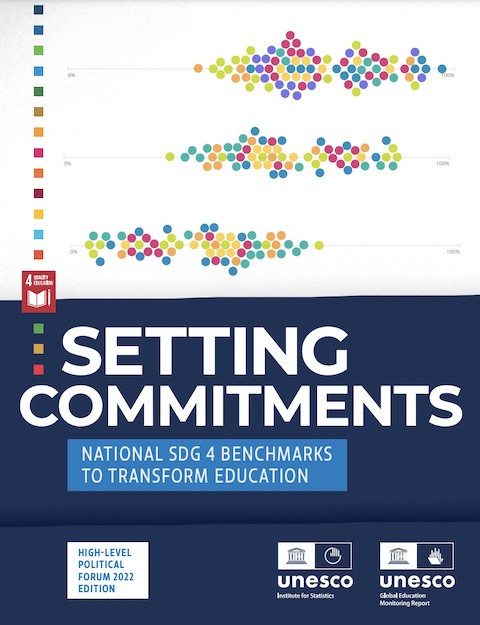 Setting Commitments: National SDG 4 Benchmarks to Transform Education Año de publicación: 2022 Autor corporativo: Global Education Monitoring Report Team | UNESCO Institute for Statistics (UIS) This publication provides an overview of the transformative agenda being established by countries, as they set SDG 4 benchmarks for education progress to take ownership of the 2030 Agenda for Sustainable Development. Inspired by the UN Secretary-General’s 2014 call for countries to embrace ‘a culture of shared responsibility’ based on ‘benchmarking for progress’, paragraph 28 of the Education 2030 Framework for Action also called on countries to establish ‘appropriate intermediate benchmarks for addressing the accountability deficit associated with longer-term targets’. This report outlines the steps taken by countries to set these commitments for 2025 and 2030 against seven indicators and is timed to feed into the second review of SDG 4 at the High-level Political Forum.The SDG 4 benchmark values now defined for almost nine in ten countries lay out their nationally determined contributions to the common education goal, using a concept embraced by the climate change sector. Twelve countries’ experiences of approaching the challenge of setting benchmarks based on their education sector plans are included, serving as inspiration for other countries to reflect on their own contributions and the task of developing appropriate policy responses in line with their own ambitions for the next decade, especially in the context of recovery from COVID-19.This publication proposes a way forward for monitoring progress towards the national SDG 4 benchmarks. This way of monitoring will be context-specific, recognizing countries’ starting points, helping link their national with regional and global education agendas.The benchmarks could be a basis for a compact in which countries commit to increasing their ambition, and, in return, the international community offers a program of support. In other words, a system of political accountability associated to political commitments with a support mechanism to accomplish the task.