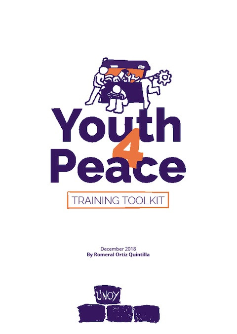 Manual de Formación “Jóvenes por la paz” Año de publicación: 2018 Autor: Romeral Ortiz Quintilla Autor corporativo: United Network of Young Peacebuilders (UNOY Peacebuilders) El manual de formación de UNOY Peacebuilders que os guiará a través de conceptos y prácticas de actividades educativas sobre la transformación de conflictos y la creación de la paz, así como también sobre la creación de narrativas pacíficas. Este manual ha sido elaborado para formadores de nivel inicial e intermedio y educadores en el campo de la construcción de paz. Esperamos que esta herramienta os sea útil para iniciarse o continuar en la implementación de programas educativos o de paz y en la transformación de conflictos y narrativas dirigidas a jóvenes a través de la educación no formal.