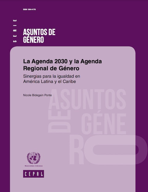 La Agenda 2030 y la Agenda Regional de Género: Sinergias para la igualdad en América Latina y el Caribe (Asuntos de Género; no. 143) Año de publicación: 2017 Autor: Nicole Bidegain Ponte Autor corporativo: UN. Economic Commission for Latin America and the Caribbean (ECLAC) En este documento se analiza la Agenda 2030 para el Desarrollo Sostenible y sus Objetivos de Desarrollo Sostenible (ODS) a la luz de los desafíos y prioridades para la igualdad de género y los derechos y la autonomía de las mujeres en América Latina y el Caribe. Se presentan ejemplos ilustrativos sobre las interrelaciones entre objetivos y metas de la Agenda 2030, y se advierte sobre la importancia de un abordaje integral para asegurar que el progreso en algunos de los ODS no se realice a través de medios que puedan obstaculizar el logro de los objetivos y metas vinculados a la igualdad de género y los derechos de las mujeres.