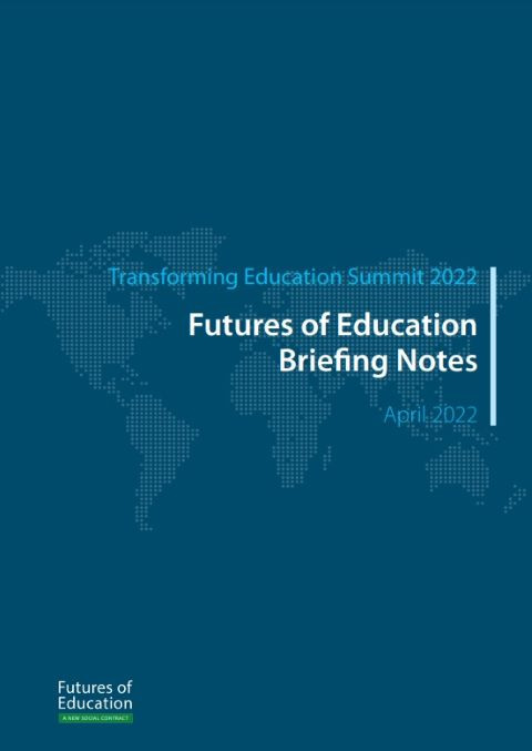 Cumbre 2022 sobre la Transformación de la Educación: Notas sinópticas sobre los Futuros de la Educación Año de publicación: 2022 Autor corporativo: UNESCO Las consultas nacionales que apuntan a desarrollar una visión compartida, un compromiso y una alineación de la acción entre los grupos constituyen uno de los flujos de trabajo clave de TES. El informe Reimaginando juntos nuestro futuro se propone como un marco para examinar cómo deben cambiar los sistemas educativos para servir mejor a los estudiantes y las sociedades en el futuro. Se ha preparado una serie de notas informativas en consonancia con las cinco vías de acción de la cumbre: o Escuelas inclusivas, equitativas, seguras y saludableso Aprendizaje y habilidades para la vida, el trabajo y el desarrollo sostenibleo Docentes, docencia y profesión docenteo Aprendizaje y transformación digitalo Financiamiento de la educación