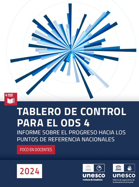 Tablero de control para el ODS 4: informe sobre el progreso hacia los puntos de referencia nacionales; foco en docentes Año de publicación: 2024 Autor corporativo: UNESCO Institute for Statistic (UIS) | Global Education Monitoring Report Team Esta es la segunda evaluación del progreso de los países hacia los puntos de referencia, o metas nacionales, que los países han establecido para ocho indicadores del ODS 4 para marcar su contribución a las metas globales. La evaluación cubre el período desde 2015 y revisa la probabilidad de que cada país alcance su punto de referencia para 2025 o, cuando no se haya establecido dicho punto de referencia, el valor que habría alcanzado si hubiera progresado al ritmo histórico (2000–15) del 25 % de los países que mejoran más rápidamente.El Tablero de Control para el ODS 4 de 2024 revela que el progreso hacia las metas nacionales está desviado en la mayoría de los indicadores. En dos casos – la brecha de género a expensas de los niños que terminan la educación secundaria alta y el gasto público en educación como proporción del gasto público total – los países incluso están retrocediendo.Por el contrario, el progreso es más rápido en el octavo indicador de referencia, la conectividad a Internet en las escuelas, que se añadió tras la prioridad otorgada a la transformación digital en la Cumbre sobre la Transformación de la Educación en 2022. Un tercio de los países estableció objetivos nacionales en 2023 y el progreso en el indicador está siendo revisado por primera vez en esta edición.El progreso también es relativamente rápido en el porcentaje de docentes con las calificaciones mínimas requeridas, que también es el indicador central de esta edición. Se presenta nueva evidencia sobre políticas nacionales en cuanto a los niveles mínimos de calificación requeridos para ingresar a la profesión docente, políticas de desarrollo profesional continuo obligatorio y políticas de formación docente sobre tecnología en educación.