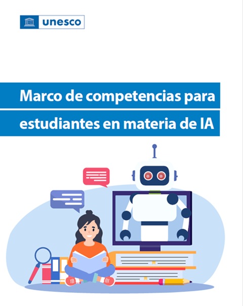 AI Competency Framework for Students Año de publicación: 2025 Autor: Fengchun Miao | Kelly Shiohira Autor corporativo: UNESCO Preparar a los estudiantes para ser ciudadanos responsables y creativos en la era de la IALa inteligencia artificial (IA) está cada vez más presente en nuestras vidas, lo que requiere sistemas educativos proactivos que preparen a los estudiantes para que sean usuarios responsables y cocreadores de la IA. Integrar los objetivos de aprendizaje de IA en los programas de estudio oficiales de las escuelas es fundamental para que los estudiantes de todo el mundo interactúen de forma segura y significativa con la IA.El objetivo del Marco de competencias para estudiantes en materia de IA de la UNESCO es ayudar a los educadores con esta integración, para lo cual describe 12 competencias que atraviesan cuatro dimensiones: una forma de pensar centrada en el ser humano, la ética de la IA, las técnicas y aplicaciones de la IA, la pedagogía de la IA, y la IA para el diseño de sistemas de IA. Estas competencias abarcan tres niveles de progresión: comprender, aplicar y crear. El marco detalla las metas curriculares y las metodologías pedagógicas específicas para cada dominio.Basado en una visión de los estudiantes como cocreadores de IA y ciudadanos responsables, el marco pone énfasis en el juicio crítico de las soluciones de IA, la conciencia de las responsabilidades ciudadanas en la era de la IA, el conocimiento fundacional de la IA para el aprendizaje a lo largo de la vida, y el diseño de IA inclusiva y sostenible.
