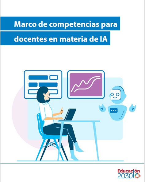 Marco de competencias para docentes en materia de IA Año de publicación: 2025 Autor: Fengchun Miao | Mutlu Cukurova Autor corporativo: UNESCO Orientación para docentes sobre el uso y el mal uso de la IA en la educaciónLa IA procesa enormes cantidades de información, genera nuevos contenidos y ayuda a la toma de decisiones mediante análisis predictivos. En el ámbito educativo, la IA ha transformado la relación tradicional docente-estudiante, creando una nueva dinámica docente-IA-estudiante. Este cambio exige replantear los roles de los docentes y las competencias que necesitan en la era de la IA. Sin embargo, son pocos los países que han definido estas competencias o desarrollado programas nacionales para capacitar a los docentes en IA, lo que deja a muchos educadores sin una orientación adecuada.El Marco de competencias en materia de IA para docentes aborda esta brecha al definir los conocimientos, habilidades y valores que los docentes deben dominar en la era de la IA. Desarrollada bajo los principios de protección de los derechos de los docentes, del fortalecimiento de la capacidad de acción humana y de la promoción de la sostenibilidad, la publicación describe 15 competencias que atraviesan cinco dimensiones: una forma de pensar centrada en el ser humano, la ética de la IA, los fundamentos y aplicaciones de la IA, la pedagogía de la IA, y la IA para el aprendizaje profesional. Estas competencias se clasifican en tres niveles de progresión: adquirir, profundizar y crear.Como una referencia global, esta herramienta orienta el desarrollo de marcos nacionales de competencias en IA, brinda insumos para los programas de formación docente y ayuda a diseñar parámetros de evaluación. También ofrece estrategias para que los docentes desarrollen conocimientos sobre IA, apliquen principios éticos y apuntalen su crecimiento profesional.