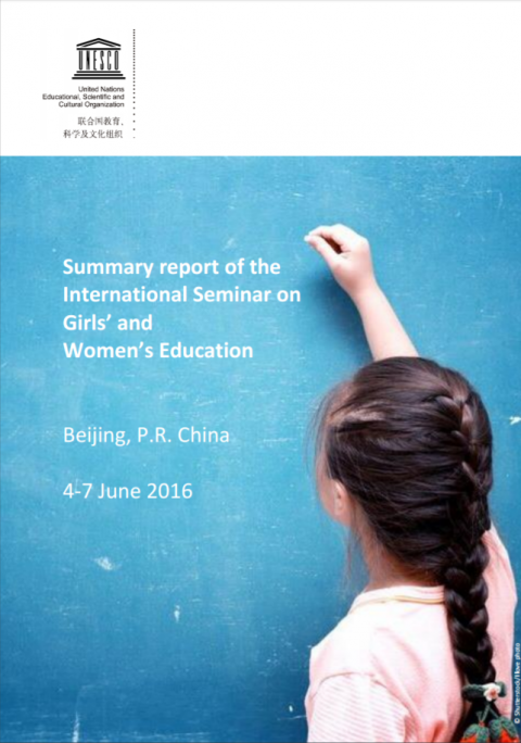 Informe resumido del Seminario internacional sobre la educación de las niñas y las mujeres, Beijing, R. P. China, 4-7 de junio de 2016 Año de publicación: 2016 Autor corporativo: National Commission of the People's Republic of China for UNESCO | UNESCO Beijing The International Seminar on Girls’ and Women’s Education, held 4-6 June 2016 in Beijing, explored benefits of education on girls and women along with barriers to the achievement of gender equality in education. It provided a platform for dialogue on the role of education for girls and women, particularly in the context of the 2030 Agenda for Sustainable Development, and specifically in reaching SDG 4 and supporting the achievement of other SDGs. The event also marked the first award ceremony of the UNESCO Prize for Girls’ and Women’s Education, which honoured two laureates for their outstanding innovation and contributions to advancing girls’ and women’s education. This publication presents a synthesis of information that was shared during the seminar’s sessions, and the findings and recommendations originating from the exchanges.