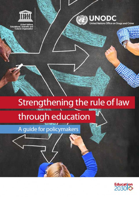 Fortalecimiento del estado de derecho mediante la educación: guía para los encargados de la formulación de políticas Año de publicación: 2019 Autor corporativo: UN. Office on Drugs and Crime (UNODC) | UNESCO La nueva publicación conjunta de la UNESCO y la Oficina de las Naciones Unidas contra la Droga y el Delito (UNODC): Fortalecimiento del estado de derecho mediante la educación: guía para los encargados de la formulación de políticas, explora el rol que pueden jugar las instituciones educativas en la promoción del estado de derecho y en la creación de nuevas formas de participación basadas en ciudadanía global, derechos humanos e inclusión – cuestiones que son vitales para promocionar el 4to Objetivo sobre educación para el Desarrollo Sostenible, en el corazón de la Agenda 2030 para el Desarrollo Sostenible. Fortalecimiento del estado de derecho mediante la educación: guía para los encargados de la formulación de políticas, está dirigido a los creadores de políticas educativas y a otros profesionales que trabajan en el sector formal de educación, dentro o fuera de los Ministerios de Educación, y que estén procurando promocionar el estado de derecho y la cultura de la legalidad.La guía también puede ser de interés para profesionales trabajando en contextos educativos no formales y otros sectores – como ser en los sectores sociales, de justicia o de salud – en las áreas de prevención de violencia y crimen, que estén buscando trabajar más cerca al área educativa. En particular, la guía ofrece: Una explicación de conceptos claves, como ser la cultura de derecho o la cultura de la legalidad, a la vez que detalla el rol de la educación en sostener y promover el estado de derecho;Orientaciones sobre cómo el sector educativo es capaz de fortalecer y promocionar el estado de derecho, por ejemplo, abordando las necesidades reales de niños y jóvenes, y asegurándose que los lugares de enseñanza “practican lo que predicen”;Un mapa de los sistemas de soporte necesarios para fortalecer el estado de derecho en la escuela, a nivel del aula y fuera de los contextos de educación formal, incluyendo soporte curricular, pedagogía de aula, desarrollo y capacitación docente y asociaciones entre la escuela, la familia y la comunidad.