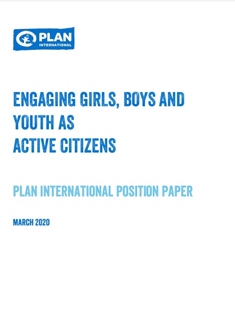 Involucrar a niñas, niños y jóvenes como ciudadanos activos: Documento de Posición de Plan International Año de publicación: 2020 Autor corporativo: Plan International En este documento se expone la posición de Plan International sobre el derecho a participar en la vida pública, así como el análisis del marco jurídico y político; las repercusiones de las normas sociales y de género en la participación; y aspectos específicos relacionados con el empoderamiento político y la ciudadanía activa. Este instrumento apunta a 100 Millones de Razones, la Estrategia Global de Plan International 2017-2022, que define como prioridad apoyar a las niñas, los niños y las/los jóvenes como motores del cambio. También apoya nuestra labor en relación con la Agenda 2030 y los Objetivos de Desarrollo Sostenible, en particular los Objetivos 5, 10 y 16. Para orientar las actividades de incidencia se incluyen varias recomendaciones de alto nivel.