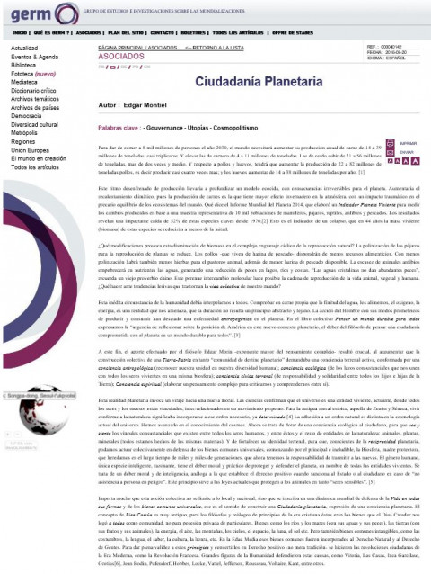 Educación para la ciudadanía mundial: temas y objetivos de aprendizaje Año de publicación: 2015 Autor corporativo: UNESCO La educación para la ciudadanía mundial aspira a ser un factor de transformación, inculcando los conocimientos, las habilidades, los valores y las actitudes que los educandos necesitan para poder contribuir a un mundo más inclusivo, justo y pacífico.La presente publicación, titulada Educación para la ciudadanía mundial: Temas y objetivos de aprendizaje, es la primera guía de la UNESCO al respecto. Se presentan sugerencias para plasmar los conceptos de la educación para la ciudadanía mundial en temas y objetivos de aprendizaje específicos para cada grupo de edad de un modo que facilita su adaptación a las circunstancias locales. Es un recurso para los educadores, los responsables de la elaboración de programas de estudios, los instructores y los encargados de la formulación de políticas, pero también será de utilidad para otros copartícipes en la educación que trabajan en contextos no formales e informales.