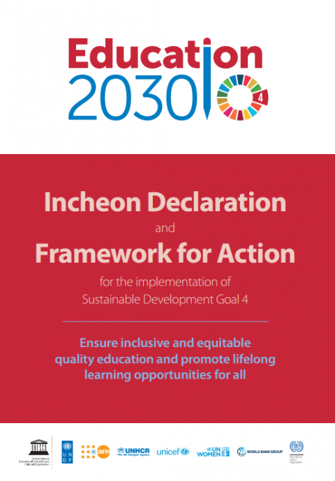Educación 2030: Declaración de Incheon y Marco de Acción para la realización del Objetivo de Desarrollo Sostenible 4: Garantizar une aducación inclusiva y equitativa de calidad y promover oportunidades de aprendizaje permanente para todos Año de publicación: 2016 Autor corporativo: UNESCO The Incheon Declaration articulates the collective vision and commitment of the international community on global education. The 2030 Framework for Action provides guidance for the implementation of Sustainable Development Goal 4.