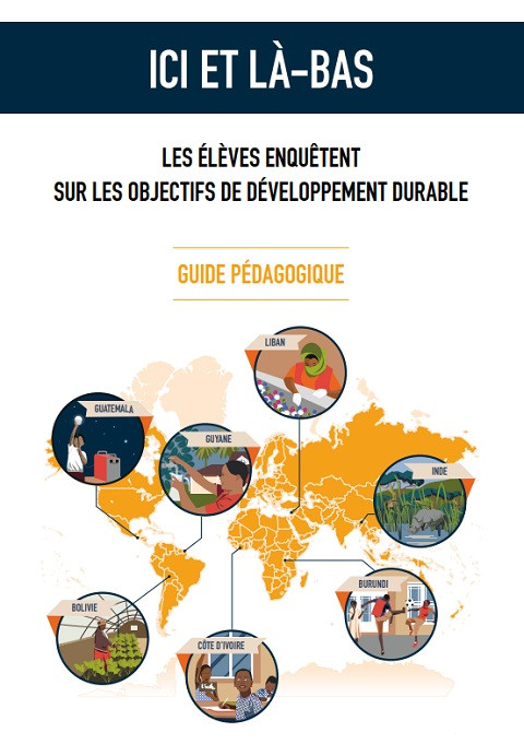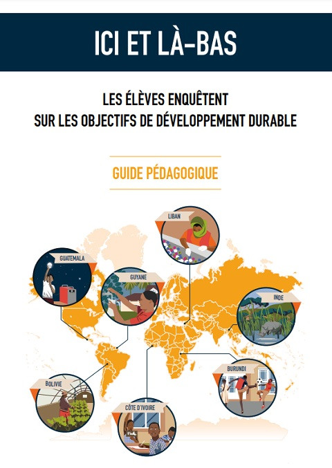 Ici et là-bas: Les élèves enquêtent sur les objectifs de développement durable; Guide pédagogique Année de publication: 2019 Auteur institutionnel: Eco-Ecole | Agence Française de Développement (AFD) Ici et Là-Bas c’est :- une méthodologie et des outils pour mener un projet sur les Objectifs de développement durable avec des élèves, en 5 étapes.- Une carte interactive pour découvrir des projets dans le monde qui contribuent à la réalisation de l’Agenda 2030.Les contenus proposés, pour expliquer les enjeux auxquels les populations font face ailleurs dans le monde, s’adressent prioritairement aux élèves des cycles 3 et 4 et du lycée. Les enseignants du 1er degré pourront également les utiliser en les adaptant, pour parler avec leurs élèves des problématiques qui touchent certains pays ou régions du monde, et les amener à faire des liens avec leur propre mode de vie.
