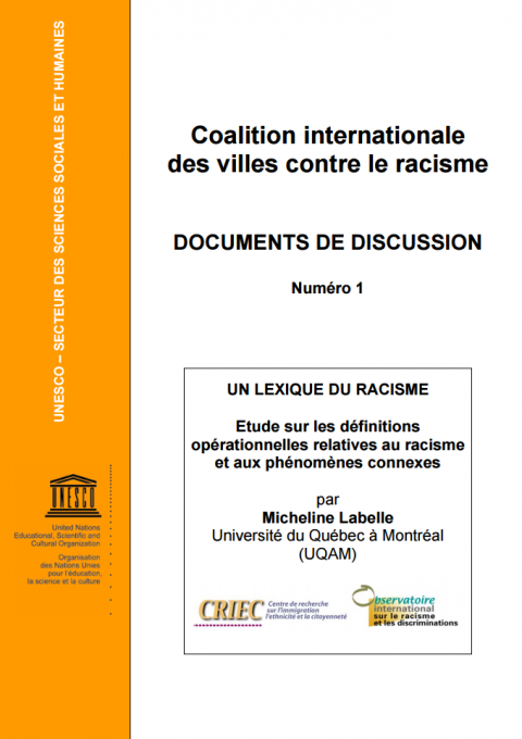 Un Lexique du racisme: étude sur les définitions opérationnelles relatives au racisme et aux phénomènes connexes Année de publication: 2006 Auteur: Micheline Labelle Auteur institutionnel: UNESCO | Centre de recherche sur l'immigration, l'ethnicité et la citoyenneté (Canada). Observatoire international sur le racisme et les discriminations Qu'est-ce que la « race »? Qu'est-ce que le racisme? Le racisme est-il universel et existet-il de toute éternité? Comment distinguer racisme, ethnocentrisme et xénophobie? Quelles sont les manifestations ou les formes élémentaires du racisme? Quels sont ses niveaux? Quelles sont ses logiques discursives? On observe dans diverses sociétés contemporaines l’expression du racisme et de l’ethnisme. Le déplacement sournois du racisme classique au néo-racisme pose différents types de problèmes pour l'analyse sociologique et politique et l’intervention sociale. L’une de ces difficultés concerne les critères de définition du racisme : le racisme existe-t-il seulement lorsque le mot « race » est présent? Est-il légitime de qualifier de racisme les préjugés et les discriminations contre les jeunes, les personnes âgées, les femmes, les homosexuels, les patrons, les policiers? Y a-t-il lieu de référer à des « racismes spécifiques » dans ses manifestations, soit un racisme qui touche des groupes cibles particuliers : Autochtones, Afrodescendants, Juifs, Arabes, etc.? Comment éviter une hiérarchisation des expressions du racisme et des cibles du racisme, tout en rendant compte de leur spécificité? Enfin, s’ajoute la question de la spécificité des sociétés (allemande, américaine, française, guadeloupéenne, japonaise, rwandaise, sud-africaine, etc.) qui fournissent le contexte politique et le répertoire culturel à partir desquels s'alimentent les expressions du racisme et de l'antiracisme. Il n’existe dans le système des Nations Unies définition du racisme. Dans son article 1, la Convention pour l’élimination du racisme et de la discrimination raciale (CERD) se limite à définir la seule discrimination raciale, qu’elle fonde sur « la race, la couleur, l’ascendance ou l’origine nationale ou ethnique ». Cette vision très large aboutit sur le plan opérationnel à faire du racisme une sorte de fourre-tout où se retrouve tout ce qui a « pour but ou pour effet de détruire ou de compromettre la reconnaissance, la jouissance ou l’exercice, dans des conditions d’égalité, des droits de l’homme et des libertés fondamentales dans les domaines politique, économique, social et culturel ou dans tout autre domaine de la vie publique ». Les instruments internationaux et nationaux recourent largement à la notion de « race » pour combattre le racisme et par le fait même, ils contribuent à la reproduction des représentations qui y sont associées. Les cibles du racisme sont souvent confondues dans une même totalité. Les préjugés ne sont pas distingués des pratiques sociales. Sous couvert d’analyser le néo-racisme, on oublie que les représentations liées au racisme « colonial » perdurent dans nos sociétés. La « gestion de la diversité » est confondue avec la lutte contre le racisme.De tout ce flou, il résulte une confusion terminologique dans les concepts lorsqu’on regarde le terrain opérationnel où la lutte contre le racisme, la xénophobie, la discrimination et toutes les formes d’intolérance se trouve unifiée. Des campagnes de prévention contre le racisme confondent les cibles du racisme et celles de l’ethnocentrisme ou de la xénophobie. Ceci a un impact sur l’efficacité de la lutte contre le racisme et contre les racismes que l’on peut qualifier de spécifiques ─ anti autochtone, anti afro-descendant, antisémitisme, arabophobie, islamophobie, etc. ─, soit ceux qui se sont manifestés historiquement et à un niveau ultime, sous la forme d’une biopolitique de haine et de violence et du racisme d’État (Le Cour Grandmaison, 2005, p.128). Étant donné ce manque de clarté conceptuel, il apparaît important de réfléchir sur les définitions du racisme et de la discrimination et sur les termes utilisés pour les combattre. La première partie propose d’entrée de jeu un commentaire critique sur la notion de « race » et distingue ensuite les fonctions, les manifestations, les niveaux et les logiques du racisme. La seconde partie contient un glossaire des termes adoptés par les experts des sciences humaines et juridiques, les institutions internationales et nationales, de même que par certains organismes de combat, dans le domaine du racisme et de la discrimination. Plusieurs de ces définitions font problème, on le constatera par comparaison. Nous illustrons ainsi la difficulté que pose la présentation d’une définition extraite ou séparée de son contexte et d’un cadre théorique sur l’interprétation du racisme que les limites de cette étude ne nous permettent pas d’analyser et de mettre en relief. Cette étude s’inscrit dans le cadre de l’action de l’UNESCO pour promouvoir le renforcement des politiques contre le racisme et la discrimination dans les villes et les municipalités. L’UNESCO a appuyé la mise sur pied de la Coalition internationale des villes contre le racisme. Le cadre de départ de cette Coalition est la proposition d’un Plan d’action en 10 points, adopté à Nuremberg, en décembre 2004 (UNESCO, 2004).
