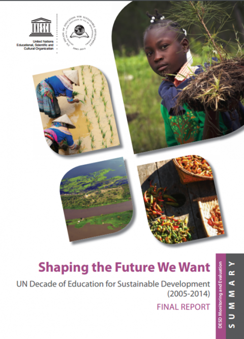 Façonner l’avenir que nous voulons: Décennie des Nations Unies pour l’éducation au service du développement durable (2005-2014) RAPPORT FINAL Année de publication: 2014 Auteur: Carolee Buckler | Heather Creech Auteur institutionnel: UNESCO Destiné aux responsables politiques et aux décideurs, ce document résume les principales conclusions et les grandes tendances, présente une synthèse des points clés, des défis et des initiatives à tous les niveaux et dans tous les domaines de l’éducation, ainsi que les mesures à adopter pour intensifier les actions décrites dans le Rapport final de suivi et d’évaluation 2014, Façonner l’avenir que nous voulons − Décennie des Nations Unies pour l’éducation au service du développement durable (2005-2014). Le Rapport final de suivi et d’évaluation examine les progrès qui ont été accomplis afin d’intégrer l’Éducation au développement durable (EDD) aux systèmes éducatifs et aux efforts déployés en faveur du développement durable. À partir des conclusions des deux précédents rapports mondiaux de suivi et d’évaluation de la Décennie et de l’évaluation de l’état actuel de l’EDD par les États membres et autres parties prenantes, ce rapport final décrit les résultats obtenus et les problèmes rencontrés au terme de dix années de progrès et d’action sur le plan de l’EDD aux niveaux mondial, national, régional et local, ainsi que dans tous les domaines et à tous les niveaux de l’éducation. Le rapport note en conclusion qu’au terme de la Décennie, l’EDD repose désormais sur des fondements solides et ce, grâce à une prise de conscience renforcée, à l’influence exercée sur les politiques et à la réalisation d’un grand nombre de projets respectueux des bonnes pratiques dans tous les domaines de l’éducation et de l’apprentissage. Les dix conclusions et tendances clés qui se dégagent à l’issue de ces dix années de travail serviront à l’avenir de guide à l’EDD. Le rapport montre également qu’en dépit des progrès accomplis, dans la plupart des pays, l’EDD n’a toujours pas été pleinement intégrée aux systèmes éducatifs.