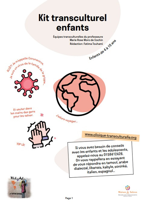 Kit transculturel enfants Année de publication: 2020 Auteur: Marie Rose Moro Auteur institutionnel: Maison de Solenn Ce kit transculturel est destiné à aider les les familles migrates en période de confinement où il devient crucial d’expliquer à chacun, avec les bons mots et dans sa langue, ce qui se passe. Il est nécéssaire d’aider l’enfant à continuer sa vie d’enfant.