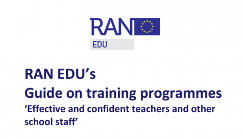 Radicalisations Awareness Network (RAN) Edu's Guide on training programmes 'Effective and confident teachers and other school staff' Année de publication: 2016 Auteur institutionnel: Radicalisations Awareness Network (RAN) Ce document aidera les enseignants, les directeurs d'école, les écoles et les autorités (locales et nationales) à discuter et à concevoir des programmes de formations. Différents modules de formation sont identifiés, comme la formation de dépolarisation, la pensée critique, et comment transformer une école en une mini société sûre et démocratique.