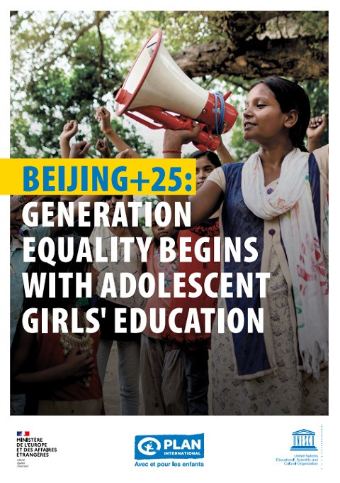 Pékin+25 : La Génération Égalité commence par l’éducation des adolescentes Année de publication: 2020 Auteur institutionnel: Plan International France | France. Ministry for Europe and Foreign Affairs | UNESCO Cette publication examine les progrès et les lacunes persistantes dans nos efforts pour parvenir à l'égalité des genres dans et par l'éducation depuis l'adoption du Programme d'action de Pékin il y a 25 ans. En 2018, 130 millions de filles dans le monde n'étaient pas scolarisées et seules deux filles sur trois étaient inscrites dans l'enseignement secondaire. La crise liée à la pandémie de COVID-19 est susceptible d'élargir encore ces écarts et menace d'interrompre l'éducation de plus de 11 millions de filles.Cette publication démontre l'importance de l'éducation des adolescentes pour l'avancement de l’agenda visionnaire du Programme d'action de Pékin et la réalisation des objectifs de développement durable.Elle formule des recommandations pour accélérer les investissements et les actions en faveur de l’éducation des adolescentes lors du Forum Génération Égalité de 2021 et des coalitions d’action qui seront lancées visant à accélérer les progrès en faveur de l’égalité des genres. Elle promeut des approches intersectorielles et des partenariats multipartites et se concentre sur trois « leviers d'action »: une éducation complète à la sexualité, la participation des adolescentes aux sciences, à la technologie, à l'ingénierie et aux mathématiques, et le développement du leadership des adolescentes. Elle fait part des propres priorités et attentes des adolescentes, ainsi que de leur vision de ce qui est nécessaire pour un avenir égal pour tous et toutes.