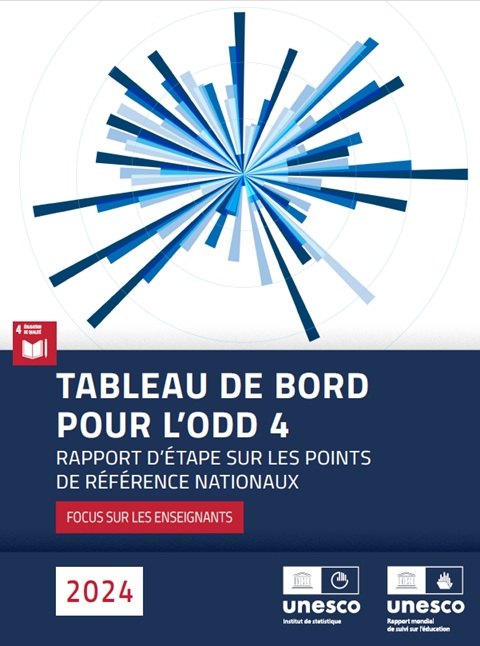 Tableau de bord pour l’ODD 4, rapport d’étape sur les points de référence nationaux: focus sur les enseignants Année de publication: 2024 Auteur institutionnel: UNESCO Institute for Statistic (UIS) | Global Education Monitoring Report Team Il s'agit de la deuxième évaluation des progrès des pays vers les points de référence, ou objectifs nationaux, que les pays ont fixés pour huit indicateurs de l'ODD 4 afin de marquer leur contribution aux objectifs mondiaux. L’évaluation couvre la période depuis 2015 et examine la probabilité que chaque pays atteigne son point de référence pour 2025 ou – lorsqu’un tel objectif n’a pas été fixé – la valeur qu’il aurait atteinte s’il avait progressé au rythme historique (2000–15) des 25 % des pays qui s’améliorent le plus rapidement.Le tableau de bord de l’ODD 4 2024 révèle que les progrès vers les objectifs nationaux sont en retard pour la plupart des indicateurs. Dans deux cas – l’écart entre les genres au détriment des garçons dans l’achèvement du deuxième cycle du secondaire et les dépenses publiques d’éducation en proportion des dépenses publiques totales – les pays reculent même.En revanche, les progrès sont plus rapides pour le huitième indicateur de référence, la connectivité Internet dans les écoles, qui a été ajouté suite à la priorité accordée à la transformation numérique lors du Sommet sur la transformation de l’éducation en 2022. Un tiers des pays ont fixé des objectifs nationaux en 2023 et les progrès sur l’indicateur sont examinés pour la première fois dans cette édition.Les progrès sont également relativement rapides en ce qui concerne le pourcentage d'enseignants possédant les qualifications minimales requises, qui est également l'indicateur central de cette édition. De nouvelles données sont présentées sur les politiques nationales concernant les niveaux de qualification minimaux requis pour accéder à la profession enseignante, les politiques de développement professionnel continu obligatoire et les politiques de formation des enseignants sur la tec