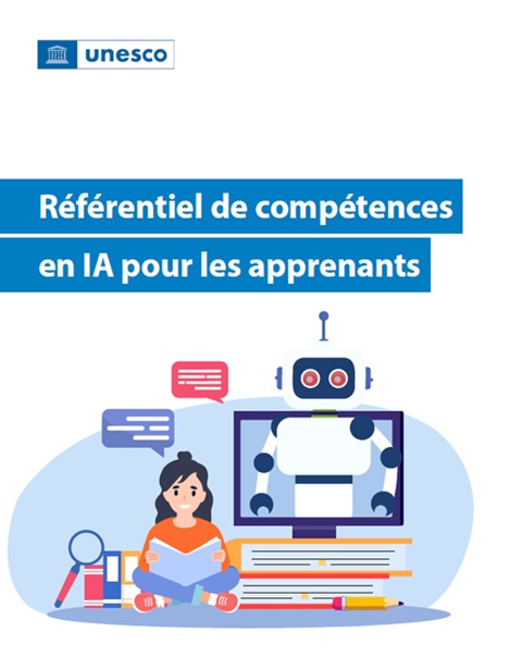 AI Competency Framework for Students Année de publication: 2025 Auteur: Fengchun Miao | Kelly Shiohira Auteur institutionnel: UNESCO Préparer les apprenants à devenir des citoyens responsables et créatifs à l’ère de l’IAL’intelligence artificielle (IA) fait tous les jours davantage partie intégrante de nos vies, ce qui implique d’avoir des systèmes éducatifs proactifs en mesure de préparer les élèves et les étudiants à être des utilisateurs responsables et des cocréateurs de l’IA. L’intégration d’objectifs d’apprentissage de l’IA dans les programmes scolaires officiels est essentielle pour que les apprenants du monde entier puissent s’intéresser en toute sécurité et de manière pertinente à l’IA.Le Référentiel de compétences en IA pour les apprenants de l’UNESCO vise à aider les éducateurs dans cette démarche, en décrivant 12 compétences réparties en quatre dimensions, à savoir une perspective centrée sur l’humain, l’éthique de l’IA, les techniques et applications de l’IA, et la conception de systèmes d’IA. Ces compétences se déploient selon trois niveaux de progression : Comprendre, Appliquer et Créer. Le référentiel détaille les objectifs du programme d’études et les méthodes pédagogiques spécifiques au domaine.Fondé sur une vision des élèves et des étudiants considérés comme cocréateurs de l’IA et citoyens responsables, le référentiel met l’accent sur le jugement critique vis-à-vis des solutions d’IA, la prise de conscience des responsabilités citoyennes à l’ère de l’IA, les connaissances fondamentales en matière d’IA pour l’apprentissage tout au long de la vie, ainsi que la conception d’une IA inclusive et durable.