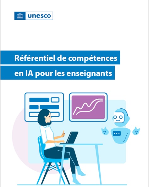 Référentiel de compétences en IA pour les enseignants Année de publication: 2025 Auteur: Fengchun Miao | Mutlu Cukurova Auteur institutionnel: UNESCO Guider les enseignants à propos de l’usage judicieux ou problématique de l’IA en éducationL’intelligence artificielle (IA) traite une grande quantité d’informations, génère de nouveaux contenus et aide à la prise de décision grâce à des analyses prédictives. Dans le domaine de l’éducation, l’IA a transformé la relation traditionnelle entre l’enseignant et l’apprenant en un triptyque dynamique entre l’enseignant, l’IA et l’apprenant. Cette évolution exige de repenser le rôle des enseignants et les compétences dont ils ont besoin à l’ère de l’IA. Pourtant, peu de pays ont défini ces compétences ou élaboré des programmes nationaux pour former les enseignants à l’IA, ce qui prive de nombreux éducateurs d’un cadre adéquat.Le Référentiel de compétences en IA pour les enseignants comble cette lacune : il définit les connaissances, les habiletés et les valeurs que les enseignants doivent maîtriser à l’ère de l’IA. Élaborée dans le respect de la protection des droits des enseignants, de l’accroissement de l’agentivité humaine et de la promotion de la durabilité, la publication présente 15 compétences réparties en cinq composantes : une approche de l’IA centrée sur l’humain, l’éthique de l’IA, les fondements et les applications de l’IA, la pédagogie de l’IA et l’IA pour l’apprentissage professionnel. Ces compétences sont classées selon trois niveaux de progression : acquérir, approfondir, créer.En tant que référence internationale, cet outil sert de guide pour l’élaboration de référentiels nationaux de compétences en IA, apporte des informations sur les programmes de formation des enseignants et aide à définir des paramètres d’évaluation des apprentissages. Il fournit également aux enseignants des stratégies pour développer leurs connaissances en matière d’IA, respecter des principes éthiques et soutenir leur développement professionnel.
