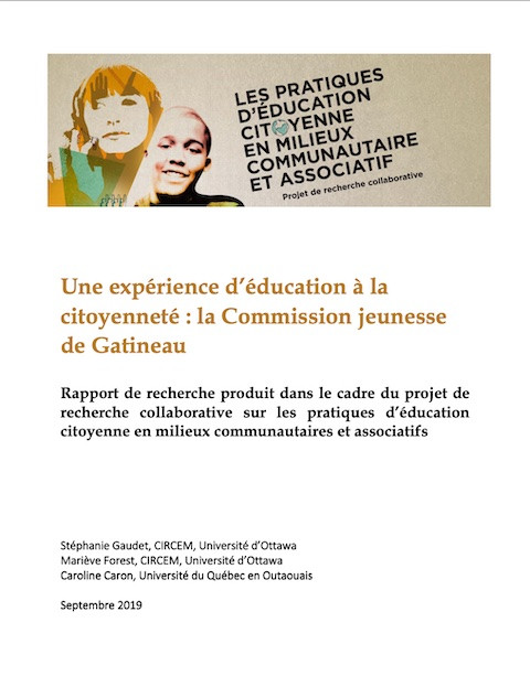 Une expérience d’éducation à la citoyenneté: La Commission jeunesse de Gatineau; Rapport de recherche produit dans le cadre du projet de recherche collaborative sur les pratiques d’éducation citoyenne en milieux communautaires et associatifs Année de publication: 2019 Auteur: Stéphanie Gaudet | Mariève Forest | Caroline Caron Auteur institutionnel: Conseil de recherches en sciences humaines du Canada | Centre interdisciplinaire de recherche sur la citoyenneté et les minorités (CIRCEM) | Université d’Ottawa Notre équipe de recherche collaborative pose l'hypothèse qu'une partie de la réponse aux enjeux d’apathie politique, de cynisme et de radicalisation se trouve dans une éducation citoyenne vivante et engageante. Alors que les représentants de milieux communautaires et municipaux participant à des initiatives d’éducation à la citoyenneté auprès de jeunes peuvent témoigner de l’importance que prennent ces expériences dans la vie de ces personnes, peu de chercheurs se sont penchés sur cette dynamique jusqu’à présent. Cette recherche collaborative vise à comprendre la portée éducative, citoyenne et démocratique de l’expérience participative des jeunes qui prennent part à des initiatives d’éducation à la citoyenneté. Six initiatives ayant cours en dehors des cursus scolaires ont été retenues dans cette étude, dont la Commission jeunesse de Gatineau (CJG). Ce rapport porte précisément sur les résultats d’observations ethnographiques et d’entretiens réalisés auprès de la CJG au cours de l’année 2017- 2018. Les questions de recherche que nous avons retenues sont les suivantes : Comment la CJG conçoit-elle la citoyenneté des jeunes? Quelles qualités citoyennes sont développées? Quelles approches éducatives sont mises de l’avant? Quelle est la portée démocratique des activités réalisées? La CJG est une instance municipale qui rassemble des jeunes, qui les incite à réfléchir et à discuter des dimensions de la vie municipale les touchant particulièrement et qui les amène à prendre des décisions à ce sujet. Plus largement, la CJG se présente comme une « école municipale de participation citoyenne. » Elle se dit également « une instance représentative reconnue en matière de jeunesse, où le sentiment d’appartenance à l’école et à la ville est un levier de l’engagement des adolescents. »