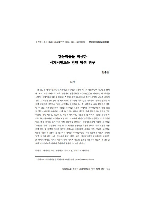 ํ๋ํ์ต์ ์ ์ฉํ ์ธ๊ณ์๋ฏผ๊ต์ก ๋ฐฉ์ ํ์ ์ฐ๊ตฌ (๊ตญ์ ์ดํด๊ต์ก์ฐ๊ตฌ; Vol. 13, No. 1) ๋ฐํ ์ฐ๋: 2018 ์ ์: ๊น์ข