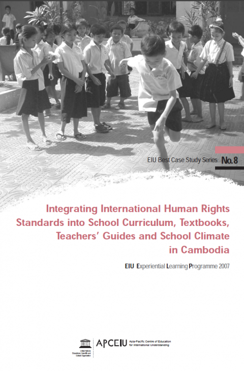 EIU Best Practice Series No.8: Integrating international human rights standards into school curriculum, textbooks, teachers' guides and school climate in Cambodia ๋ฐํ ์ฐ๋: 2007 ์ ์: Seungmi Lee | Hyewon Jung ๋จ์ฒด ์ ์: APCEIU It goes without saying that the aftermath of the war brings various challenges such as poverty, displacement, disability, destroyed culture, etc. and it is of critical importance that it should be well-remedied to preclude its recurrence. In this regard, value education and human rights education are considered crucial and to my mind, so is the educational role that religion can play. Although religions have harmonized the impaired society, but generally they have not been appreciated by their ignorant disciples or followers. Thus, value education is considered to be able to play a crucial role. It is in this context that human rihts education is gaining currency in Cambodia in recent years and has been implemented gradually.
