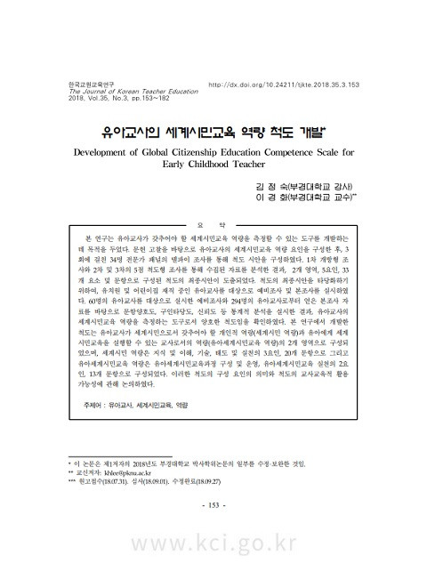 ์ ์๊ต์ฌ์ ์ธ๊ณ์๋ฏผ๊ต์ก ์ญ๋ ์ฒ๋ ๊ฐ๋ฐ (ํ๊ตญ๊ต์๊ต์ก์ฐ๊ตฌ; Vol.35, No.3) ๋ฐํ ์ฐ๋: 2018 ์ ์: ๊น์ ์ | ์ด๊ฒฝํ ๋จ์ฒด ์ ์: ํ๊ตญ๊ต์๊ต์กํํ ๋ณธ ์ฐ๊ตฌ๋ ์ ์๊ต์ฌ๊ฐ ๊ฐ์ถ์ด์ผ ํ ์ธ๊ณ์๋ฏผ๊ต์ก ์ญ๋์ ์ธก์ ํ ์ ์๋ ๋๊ตฌ๋ฅผ ๊ฐ๋ฐํ๋ ๋ฐ ๋ชฉ์ ์ ๋์๋ค. ๋ฌธํ ๊ณ ์ฐฐ์ ๋ฐํ์ผ๋ก ์ ์๊ต์ฌ์ ์ธ๊ณ์๋ฏผ๊ต์ก ์ญ๋ ์์ธ์ ๊ตฌ์ฑํ ํ, 3 ํ์ ๊ฑธ์น 34๋ช