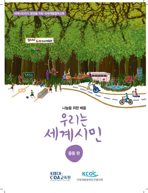 ์ฐ๋ฆฌ๋ ์ธ๊ณ์๋ฏผ: ๋๋์ ์ํ ๋ฐฐ์; ์ค๋ฑ ํธ ๋ฐํ ์ฐ๋: 2013 ์ ์: ๊ณ ์๋ผ | ๊ณ ์์ฃผ | ๊น์๋ฏธ | ์ฑ์๊ฒฝ | ํ์ง์ ๋จ์ฒด ์ ์: KOICA ODA ๊ต์ก์ | ๊ตญ์ ๊ฐ๋ฐํ๋ ฅ๋ฏผ๊ฐํ์ํ ์ฐ๋ฆฌ๋ ์ธ๊ณ์๋ฏผ(์ค๋ฑํธ)์ ์ํธ์ฐ๊ณ์ฑ, ์ธ๊ถ, ๋น๊ณค, ๊ตญ์ ๊ฐ๋ฐ ์ง๋ก ๋ฑ์ ์ฃผ์ ๋ก ํ ์ธ๊ณ์๋ฏผ๊ต์ก ๊ต์ฌ์ฉ ๊ต์ํ์ต์๋ฃ์ด๋ค. ํ์์ฉ ์ํฌ๋ถ ๋ฐ ์ ํํ๋์ด ํฌํจ๋์ด ์๋ค.