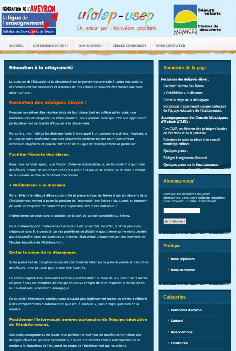 La question de l’Education à la citoyenneté est largement transversale à toutes nos actions, néanmoins certains dispositifs et certaines de nos actions ne peuvent être classés que sous cette rubrique :Formation des délégués élèves :Proposer aux élèves élus représentants de leur classe, tant en collège qu’en lycée, une formation est une obligation de l’établissement, nous pensons aussi que c’est une opportunité particulièrement pertinente d’éduquer à la citoyenneté.Par contre, rien n’oblige les établissements à faire appel à un partenaire extérieur. Pourtant, à la lueur de notre expérience quelques arguments semblent plaider pour l’intervention extérieure en général et pour la fédération de la Ligue de l’Enseignement en particulier.