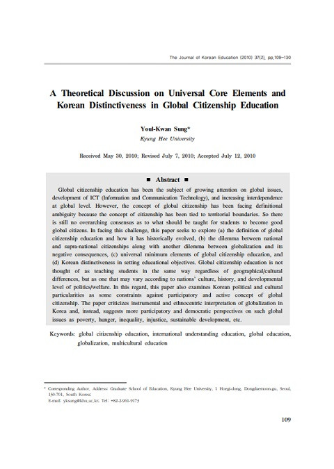 ์ธ๊ณ์๋ฏผ๊ต์ก ๊ต์ก๊ณผ์ ์ ๋ณดํธ์ ํต์ฌ ์์์ ํ๊ตญ์ ํน์์ฑ์ ๋ํ ๊ณ ์ฐฐ (ํ๊ตญ๊ต์ก; Vol.37, No. 2) ๋ฐํ ์ฐ๋: 2010 ์ ์: ์ฑ์ด๊ด ๋จ์ฒด ์ ์: ํ๊ตญ๊ต์ก๊ฐ๋ฐ์ ์ต๊ทผ ์ ๋ณดํต์ ์ ๋ฐ๋ฌ์ ๋ฌผ๋ก ๊ฒฝ์ ์ ์ํธ ์์กด์ฑ์ด ๊ธ๊ฒฉํ ๋์์ง๋ฉด์ ์ธ๊ณ์๋ฏผ๊ต์ก์ ๋ํ ๊ด์ฌ์ด ๋ถ์ํ๊ณ ์๋ค. ๊ทธ๋ฌ๋ ์ธ๊ณ์๋ฏผ์ ์ผ๊ตญ์ ๊ตญ๊ฒฝ์ ๋๋ ๊ฐ๋
