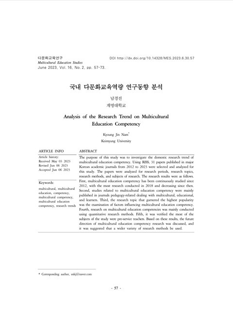 ผ๋ฌธ์ ์ ์ ํ์๋ค. ์ฐ๋๋ณ ์ถ์ด, ์ฐ๊ตฌ์ฃผ์ , ์ฐ๊ตฌ๋์ ๋ฑ์ ๋ถ์ํ๋ก ํ์ฌ ์ฐ๊ตฌ๋ํฅ ๋ฐ ํน์ง์ ๋ถ์ํ์๋ค. ์ฐ๊ตฌ๊ฒฐ๊ณผ๋ ๋ค์๊ณผ ๊ฐ๋ค. ์ฒซ์งธ, ๋ค๋ฌธํ๊ต์ก์ญ๋ ๊ด๋ จ ์ฐ๊ตฌ๋ 2012๋