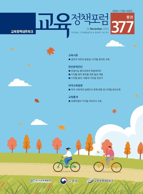 11์, Vol. 377) ๋ฐํ ์ฐ๋: 2024 ๋จ์ฒด ์ ์: ํ๊ตญ๊ต์ก๊ฐ๋ฐ์ ๊ต์ก์๋ก โ ๊ณต์กด๊ณผ ์์กด์ ๊ฐ๋ฆผ๊ธธ-๋์งํธ ์ค๋ฆฌ์ ๊ต์ก ํ์๋ฌธ์ ์ง๋จโ ์ธ๊ณต์ง๋ฅ ์ค๋ฆฌ๊ต์ก๊ณผ ํ์ต๋ฐ์ดํฐโ ๋์งํธ ๊ถ๋ฆฌ ์ฆ์ง์ ์ํ ํ์ ์ญ๋โ ๋์งํธ ์ค๋ฆฌ, ์ด๋ป๊ฒ ๊ฐ๋ฅด์น ๊ฒ์ธ๊ฐ ์ธ๊ตญ๊ต์ก๋ํฅโ ๋ฏธ๊ตญ ๊ต์ก๊ณ์ ๋ฅํ์ดํฌ ๋ฌธ์ ๋์ ๋ฐ ๋์งํธ ์ค๋ฆฌ๊ต์ก ๊ต์กํต๊ณโ ์ด์คํ์์ ๋์งํธ ๋ฆฌํฐ๋ฌ์ ์์ค