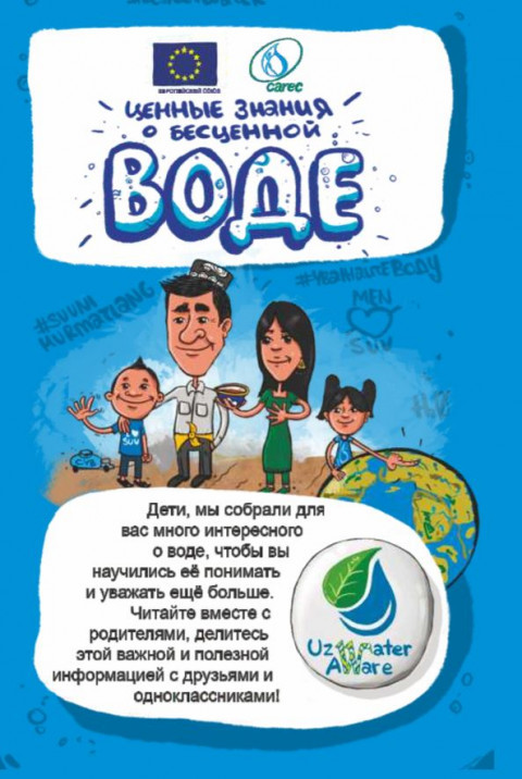Ценные знания о бесценной воде Год публикации: 2020 Организация-автор: Regional Environmental Centre for Central Asia (CAREC) Детская познавательная книжка проекта UzWaterAware по водной осведомленности «Ценные знания о бесценной воде» - это иллюстрированный детский сборник о бережном и уважительном отношении к водным ресурсам, подготовленный в рамках проекта UzWaterAware. Проект реализуется РЭЦЦА при финансовой поддержке Европейского Союза. Национальный партнер: Министерство водного хозяйства РУ.Издание подготовлено в рамках сотрудничества проекта с единственным в Узбекистане детским эко-журналом «Родничок» (узб. «Buloqcha») Экологического движения Узбекистана.В книжке на доступном для детей языке и в увлекательном, красочном формате представлена информация о мировых запасах воды, основных водных артериях Узбекистана, рассказывается, что такое «виртуальная вода», водосберегающие технологии, а также приводится множество интересных фактов, опытов с водой, загадок, кроссвордов и т.д.