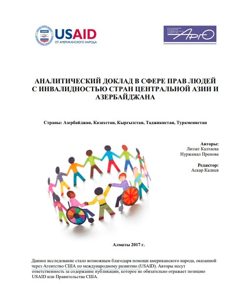 Аналитический доклад в сфере прав людей с инвалидностью стран Центральной Азии и Азербайджана Год публикации: 2017 Автор: Lyazzat Kaltayeva | Nurzhamal Prenova Организация-автор: Civil Society Development Association (ARGO) | United States Agency for International Development (USAID) Данный аналитический доклад выпущен по результатам экспертного исследования, проведенного в странах ЦА и Азербайджан весной 2017 года. В фокусе исследования - права людей с инвалидностью, которые напрямую влияют на качество жизни людей с инвалидностью и анализ подходов, потенциал и возможности организации гражданского общества для улучшения положения с правами людей с инвалидностью в выбранных странах.Исследование позволило отследить последние изменения в области политики и законодательства по правам людей с инвалидностью, выявить и зафиксировать лучшие практики, уроки и вызовы, связанные с продвижением прав людей с инвалидностью в регионе.
