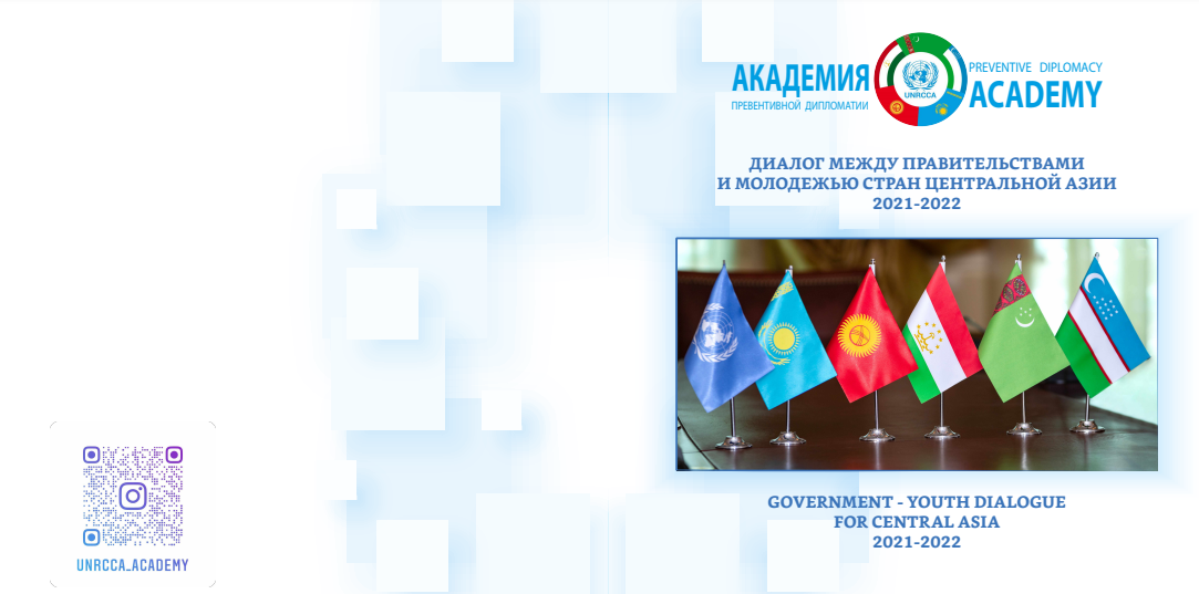 Диалог между правительствами и молодежью стран Центральной Азии 2021-2022 Год публикации: 2023 Организация-автор: РЦПДЦА Данная публикация представляет собой сборник посланий молодых в ходе третьего (8 декабря 2021 года, г. Душанбе, Республика Таджикистан) и четвертого (11 декабря 2022 года, г. Ашхабад, Туркменистан) Диалогов между правительствами и молодежью стран Центральной Азии, а также сборник истории успехов участников программы «Академия превентивной дипломатии» Регионального Центра ООН по превентивной дипломатии для Центральной Азии (РЦПДЦА).