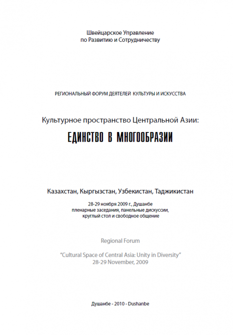 Культурное пространство Центральной Азии: единство в многообразии Год публикации: 2010 Организация-автор: Swiss Agency for Development and Cooperation (SDC) Доклад представляет собой материалы регионального форума «Культурное пространство Центральной Азии: единство в разнообразии», состоявшегося в Душанбе, Таджикистан в 2010 году.
