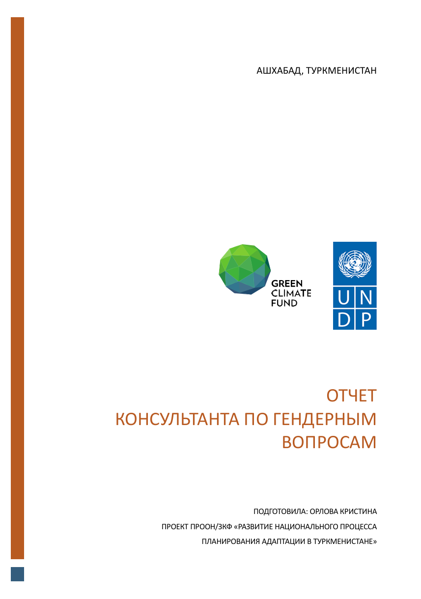 Адаптация к изменению климата с учетом гендерных аспектов Год публикации: 2022 Организация-автор: ПРООН в Туркменистане Анализ национальных стратегических документов для определения возможностей учета гендерных аспектов при планировании адаптационных мероприятий в водном и сельскохозяйственном секторах Туркменистана.
