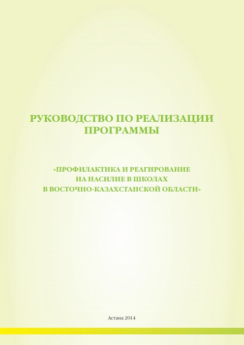 Руководство по реализации программы: Профилактика и реагирование на насилие в школах в восточно-казахстанской области Год публикации: 2014 Автор: Robin Haarr Организация-автор: United Nations Children's Fund (UNICEF) Насилие в школе может угрожать ощущению безопасности детей в школе и отрицательно влиять на их способность к обучению. Наилучшим способом решения проблемы насилия в школе является профилактика и должное вмешательство при его проявлении.Данное пособие подготовлено в рамках сотрудничества между Министерством образования и науки РК, учреждением Уполномоченного по правам человека, акиматом Восточно-Казахстанской области, Восточно-Казахстанским государственным университетом им. Аманжолова и ЮНИСЕФ в целях реализации проекта по профилактике и реагированию на насилие в отношении детей в школах Казахстана, при поддержке Министерства иностранных дел Норвегии.