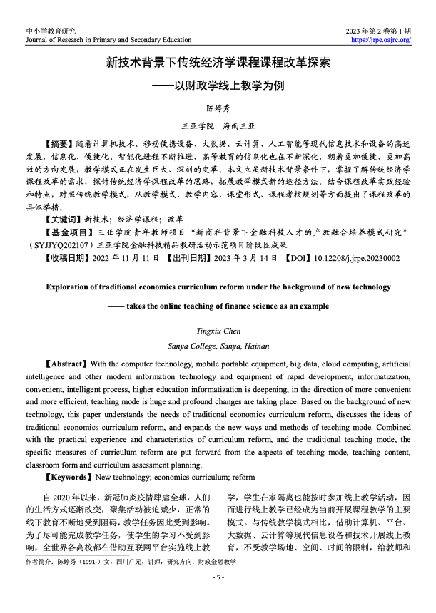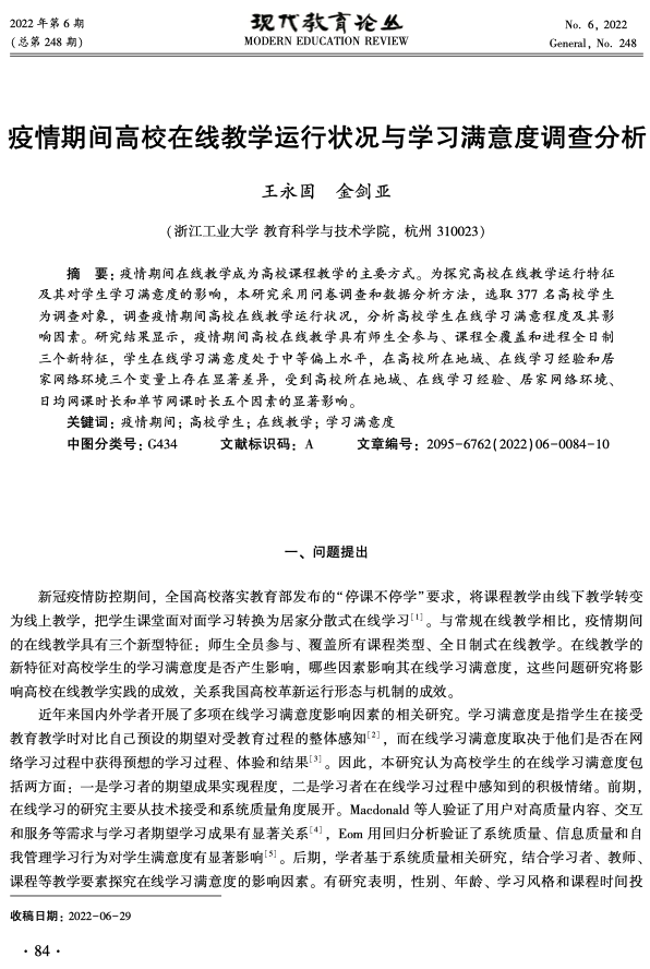 高等教育机构实施终身学习的国际趋势 : 研究报告 出版年份: 2023 机构作者: UNESCO Institute for Lifelong Learning (UIL) | Shanghai Open University 《高等教育机构实施终身学习的国际趋势》这份研究 报告全面概述了全球高等教育领域终身学习的发展 状况。报告研究了高等教育机构如何为终身学习做出 贡献,并展示了不同实施领域的进展情况。报告基于 2020年开展的一项国际调查的结果,该调查由联合国 教科文组织终身学习研究所(UIL)牵头,国际大学协会 (IAU)和上海开放大学(SOU)予以合作。调查收到了来自世界各地区96个国家的399个机构的 有效答复。报告分析了高等教育终身学习(LLL)制度 化的三个主要方面,分别是促进高等教育终身学习的 支持性政策环境;机构治理与实施;高等教育机构通过 多样化和灵活性增加终身学习机会的方法和程度。 教育信息化政策和总体规划论纲 出版年份: 2022 作者: Fengchun Miao | Juan Enrique Hinostroza | Molly Lee | Shafika Isaacs | Dominic Orr | Fabio Senne | Ana-Laura Martinez | Ki-Sang Song | Alexander Uvarov | Wayne Holmes | and Benjamin Vergel de Dios 机构作者: UNESCO 几十年来,全球各国都在尝试利用信息与通信技术(Information and Communication Technologies,ICTs)促进教育发展。这些由公共 机构推动并涉及商业技术公司的行动计划却产生了诸如数字不平等 进一步加剧以及高质量数字学习机会不均衡等矛盾。新冠疫情危机 加剧了这一趋势:在2020年新冠疫情危机最严峻的时期,全球至少 三分之一的学生无法获得远程教育。本出版物旨在引导政策制定者在采用技术时提供人 权保障;将包容、公平和性别平等视为解决方案的 核心;将技术创新视为共同利益。 基于以上原则, 本出版物采用以人为本的视角, 审视从低带宽技术到人工智能和互联网3.0或“元宇宙”等新兴技术的潜能。本出版物倡导国家政策应保护教师和学生的数字健康, 减少和中和数字碳排放足迹,并避免“技术解决方案主义”。本出版物提出了一个教育信息化政策规划框架以及 迭接式政策规划路线图,以引导对各地教育系统的数字化准备状态 的评估、对学习者和教师的需求分析,进而规划有充足的配套资源 支持的国家教育信息化方案。随后,本出版物还深入剖析了在教育 的不同领域实施教育信息化的国家总体规划的典型范例。 [摘要] 《全球教育监测报告》摘要 2023: 技术运用于教育; 谁来做主? 出版年份: 2023 机构作者: UNESCO | Global Education Monitoring Report Team 技术在教育中的角色长期以来一直引发激烈的争论。它是民主化知识的推动者,还是通过允许少数人控制信息而威胁民主?它提供无限机会,还是导致依赖技术的未来无法回头?它能够实现平等竞争,还是加剧不平等?应该在教授幼儿时使用,还是存在对其发展的风险?这场辩论受到了COVID-19疫情导致的学校关闭以及生成人工智能的出现的影响。 但由于开发者往往领先于决策者一步,教育技术的研究变得复杂。坚实、公正的证据相当稀缺。在将技术视为解决方案之前,社会是否正在就教育问题提出正确的问题?在追求技术的好处时是否意识到其中的风险?  信息和通信技术有潜力支持平等和包容,以实现与弱势学习者的接触和以引人入胜且经济实惠的方式传播更多知识。在某些情况下,对于某些类型的学习,它可以提高教学质量和学习基本技能。无疑,数字技能已成为基本技能包的一部分。数字技术还可以支持管理并提高效率,帮助处理更大量的教育数据。  然而,技术也可能造成排斥,并且可能是无关紧要且繁重的,甚至是有害的。政府需要确保创造适当的条件,为所有人提供公平的教育机会,对技术使用进行监管,以保护学习者免受其负面影响,并为教师做好准备。 本报告建议,在基于证据表明其适当、公平、可扩展和可持续的情况下引入技术到教育中。换句话说,其使用应符合学习者的最佳利益,并应与教师的面对面互动相辅相成。应将其视为一种工具,以这些条件来使用。 到2023年全球教育监测报告截止期限的中途,评估了实现2030年教育目标仍需走多远。教育是实现其他发展目标的关键,尤其是技术进步的目标。   新技术背景下传统经济学课程课程改革探索: 以财政学线上教学为例 出版年份: 2023 作者: 陈婷秀 随着计算机技术、移动便携设备、大数据、云计算、人工智能等现代信息技术和设备的高速发展,信息化、便捷化、智能化进程不断推进,高等教育的信息化也在不断深化,朝着更加便捷、更加高效的方向发展,教学模式正在发生巨大、深刻的变革。本文立足新技术背景条件下,掌握了解传统经济学课程改革的需求,探讨传统经济学课程改革的思路,拓展教学模式新的途径方法。结合课程改革实践经验和特点,对照传统教学模式,从教学模式、教学内容、课堂形式、课程考核规划等方面提出了课程改革的具体举措。 疫情期间高校在线教学运行状况与学习满意度调查分析 出版年份: 2022 作者: 王永固 | 金剑亚 疫情期间在线教学成为高校课程教学的主要方式。为探究高校在线教学运行特征及其对学生学习满意度的影响,本研究采用问卷调查和数据分析方法,选取377名高校学生为调查对象,调查疫情期间高校在线教学运行状况,分析高校学生在线学习满意程度及其影响因素。研究结果显示,疫情期间高校在线教学具有师生全参与、课程全覆盖和进程全日制三