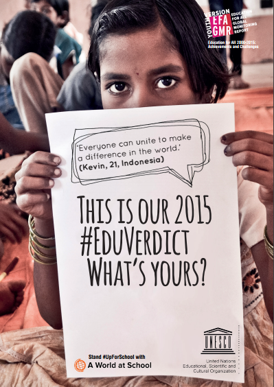 这是我们的2015 教育回望#EduVerdict 你的呢? 出版年份: 2015 机构作者: UNESCO This report highlights the progress and challenges that countries have faced over 15 years, brining together the voices of young people to show how Education for All (EFA) has affected their lives.