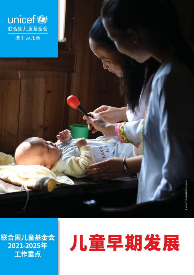 儿童早期发展 出版年份: 2023 作者: 联合国儿童基金会驻华办事处 从胚胎到三岁这段时期的发展将为儿童一生的健康和学习奠定基础,其重要性不言而喻。在生命的最初几年,大脑发育迅速,每秒钟形成100多万个新的神经元连结。婴儿期内,大脑体积翻倍并不断增长,到三岁时达到成人期的80%左右,到五岁时达到成人的90%,发育几近充分。在儿童生命早期提供优质支持,是一种高效且具有成本效益的措施。儿童早期发展会带来长期收益,不仅能够减少暴力、抑郁和社会阻抑的发生,而且可以改善成年后的健康和学习状况,提高劳动生产力。在中国,近1700万五岁以下儿童无法充分发挥自身潜能,面临早期发展迟缓和残障的风险。弱势群体中的儿童所能获得的照护和卫生保健服务相对有限,获得早期学习、社会福利和保护服务的机会也相对较少,从而可能面临着更大的风险。联合国儿童基金会正携手合作伙伴,致力于加大对儿童早期发展的投入,帮助父母了解儿童早期发展的重要性,并鼓励政府和雇主制定支持儿童早期发展的政策。相关证据显示,当家庭成为支持儿童早期发展的主力时,幼儿获得的益处最多。联合国儿童基金会倡导制定相应政策和项目,增强父母作为主要照护人的能力,促进孩子在0-3岁阶段的健康发展。