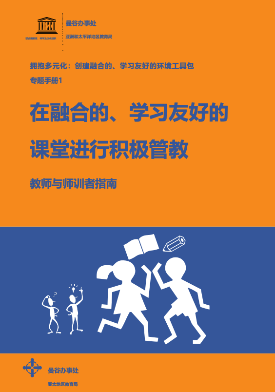 在融合的、学习友好的课堂进行积极管教 出版年份: 2022 作者: 联合国教科文组织亚太教育局 在许多国家,儿童在学校遭受体罚很常见,这是一种对儿童的虐待。体罚是针对儿童的蓄意暴力,也是一种广泛存在的现象。在大多数国家,殴打儿童的教师仍然可以获得法律辩护。但是长远地看,尚无证据表明体罚是有效的,而且体罚可能导致儿童羞愧、内疚、焦虑、好斗、缺乏独立性、不在乎他人,进而给老师、看护人和其他儿童带来更严重的问题。体罚持续存在的一个主要原因是教师不理解体罚有别于“管教”,体罚是为了阻止儿童的某些行为,而积极管教是让儿童学习新的、正确的行为,同时不必担心遭受暴力。另一个主要原因是,教师没有学习到儿童行为不当的原因,以及如何根据这些行为对他们进行积极管教。很多时候,当儿童感到需求没有得到满足时(例如想得到关注),他们就可能会行为不当。儿童的不当行为给教师带来挫败感,而教师又缺乏处理的技巧,进而导致一些教师诉诸暴力,对儿童进行体罚或在情感上施以侮辱性的惩罚。这份教师与师训工作者指南,充实完善了联合国教科文组织出版物《拥抱多元化:创建融合的、学习友好的的环境工具包》(ILFE 工具包)(Embracing Diversity: A Toolkit for Creating Inclusive, Learning-Friendly Environments,简称ILFE Toolkit)。这本专题手册旨在帮助教师、学校行政人员和教育官员采取积极、主动的非暴力方式应对学生的不当行为,在课堂上有效地管理学生。手册介绍了多种积极管教的具体工具,可用于代替鞭打、打屁股、掐捏、威胁、劝诱、收买、吼叫、指使、辱骂、强迫劳动等惩罚方式及其他更具侮辱性的做法。