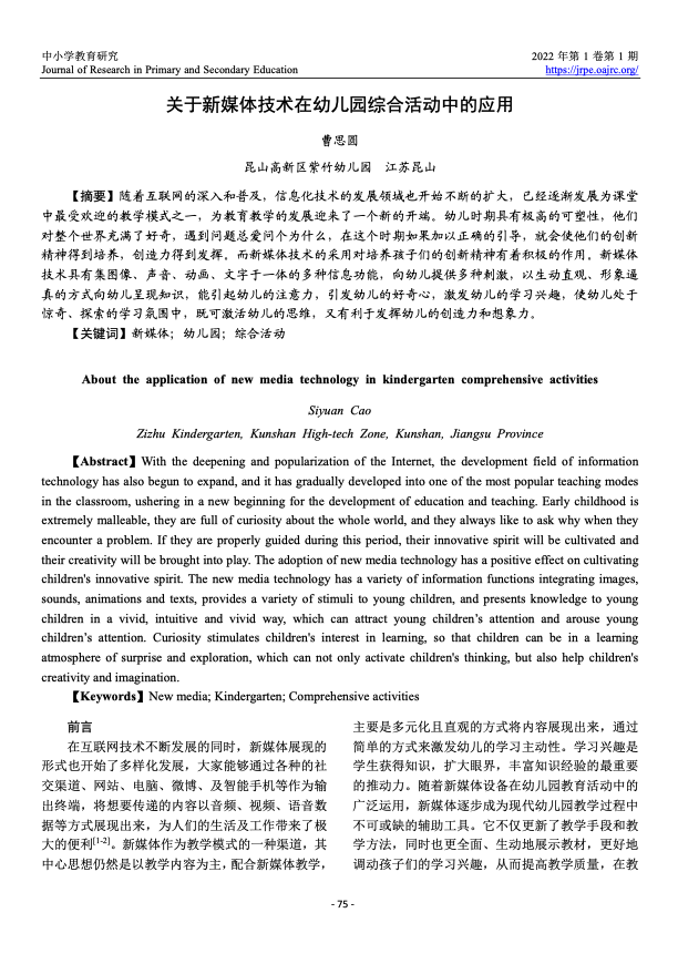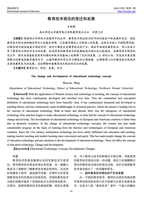 人工智能与教育: 政策制定者指南 出版年份: 2021 作者: Fengchun Miao | Wayne Holmes | Ronghuai Huang | Hui Zhang 机构作者: UNESCO 该文件为政策制定者提供关于人工智能在教育领域内应用于发展的相关知识,包括其定义与技术一级对教学和教育的影响,并为政策制定者提供相关政策建议。 高等教育机构实施终身学习的国际趋势 : 研究报告 出版年份: 2023 机构作者: UNESCO Institute for Lifelong Learning (UIL) | Shanghai Open University 《高等教育机构实施终身学习的国际趋势》这份研究 报告全面概述了全球高等教育领域终身学习的发展 状况。报告研究了高等教育机构如何为终身学习做出 贡献,并展示了不同实施领域的进展情况。报告基于 2020年开展的一项国际调查的结果,该调查由联合国 教科文组织终身学习研究所(UIL)牵头,国际大学协会 (IAU)和上海开放大学(SOU)予以合作。调查收到了来自世界各地区96个国家的399个机构的 有效答复。报告分析了高等教育终身学习(LLL)制度 化的三个主要方面,分别是促进高等教育终身学习的 支持性政策环境;机构治理与实施;高等教育机构通过 多样化和灵活性增加终身学习机会的方法和程度。 [摘要] 《全球教育监测报告》摘要 2023: 技术运用于教育; 谁来做主? 出版年份: 2023 机构作者: UNESCO | Global Education Monitoring Report Team 技术在教育中的角色长期以来一直引发激烈的争论。它是民主化知识的推动者,还是通过允许少数人控制信息而威胁民主?它提供无限机会,还是导致依赖技术的未来无法回头?它能够实现平等竞争,还是加剧不平等?应该在教授幼儿时使用,还是存在对其发展的风险?这场辩论受到了COVID-19疫情导致的学校关闭以及生成人工智能的出现的影响。 但由于开发者往往领先于决策者一步,教育技术的研究变得复杂。坚实、公正的证据相当稀缺。在将技术视为解决方案之前,社会是否正在就教育问题提出正确的问题?在追求技术的好处时是否意识到其中的风险?  信息和通信技术有潜力支持平等和包容,以实现与弱势学习者的接触和以引人入胜且经济实惠的方式传播更多知识。在某些情况下,对于某些类型的学习,它可以提高教学质量和学习基本技能。无疑,数字技能已成为基本技能包的一部分。数字技术还可以支持管理并提高效率,帮助处理更大量的教育数据。  然而,技术也可能造成排斥,并且可能是无关紧要且繁重的,甚至是有害的。政府需要确保创造适当的条件,为所有人提供公平的教育机会,对技术使用进行监管,以保护学习者免受其负面影响,并为教师做好准备。 本报告建议,在基于证据表明其适当、公平、可扩展和可持续的情况下引入技术到教育中。换句话说,其使用应符合学习者的最佳利益,并应与教师的面对面互动相辅相成。应将其视为一种工具,以这些条件来使用。 到2023年全球教育监测报告截止期限的中途,评估了实现2030年教育目标仍需走多远。教育是实现其他发展目标的关键,尤其是技术进步的目标。   教育技术观念的变迁和发展 出版年份: 2020 作者: 王婉婉 随着西方科学技术在教学中的应用,教育技术观念经过时间的流逝在不断发展和充实。现在教育技术的内涵和概念界定已经基本明确,它在教学理论上不断深入和发展,在技术实践上不断取得突破,对教育技术观念起着引领性作用。国内外都是先有教育技术的产生,随后开始研究教育技术,所以后来才有了教育技术观念的变迁和发展。欧美国家的教育技术的发展较国内相比是比较快的,在教育技术观念的变迁中,国内在借鉴欧美国家的理论和技术的基础上也取得了长足的发展。21世纪以来,信息技术更是潜移默化的渗透到教育教学当中,让教师教学和学生学习都更加方便快捷,这都使得人们对教育技术改观并且重视教育技术的发展,这些都影响着教育技术观念的变迁和发展。 新技术背景下传统经济学课程课程改革探索: 以财政学线上教学为例 出版年份: 2023 作者: 陈婷秀 随着计算机技术、移动便携设备、大数据、云计算、人工智能等现代信息技术和设备的高速发展,信息化、便捷化、智能化进程不断推进,高等教育的信息化也在不断深化,朝着更加便捷、更加高效的方向发展,教学模式正在发生巨大、深刻的变革。本文立足新技术背景条件下,掌握了解传统经济学课程改革的需求,探讨传统经济学课程改革的思路,拓展教学模式新的途径方法。结合课程改革实践经验和特点,对照传统教学模式,从教学模式、教学内容、课堂形式、课程考核规划等方面提出了课程改革的具体举措。 关于新媒体技术在幼儿园综合活动中的应用 出版年份: 2022 作者: 曹思圆 随着互联网的深入和普及,信息化技术的发展领域也开始不断的扩大,已经逐渐发展为课堂中最受欢迎的教学模式之一,为教育教学的发展迎来了一个新的开端。幼儿时期具有极高的可塑性,他们对整个世界充满了好奇,遇到问题总爱问个为什么,在这个时期如果加以正确的引导,就会使他们的创新精神得到培养,创造力得到发挥。而新媒体技术的采用对培养孩子们的创新精神有着积极的作用。新媒体技术具有集图像、声音、动画、文字于一体的多种信息功能,向幼儿提供多种刺激,以生动直观、形象逼真的方式向幼儿呈现知识,能引起幼儿的注意力,引发幼儿的好奇心,激发幼儿的学习兴趣,使幼儿处于惊奇、探索的